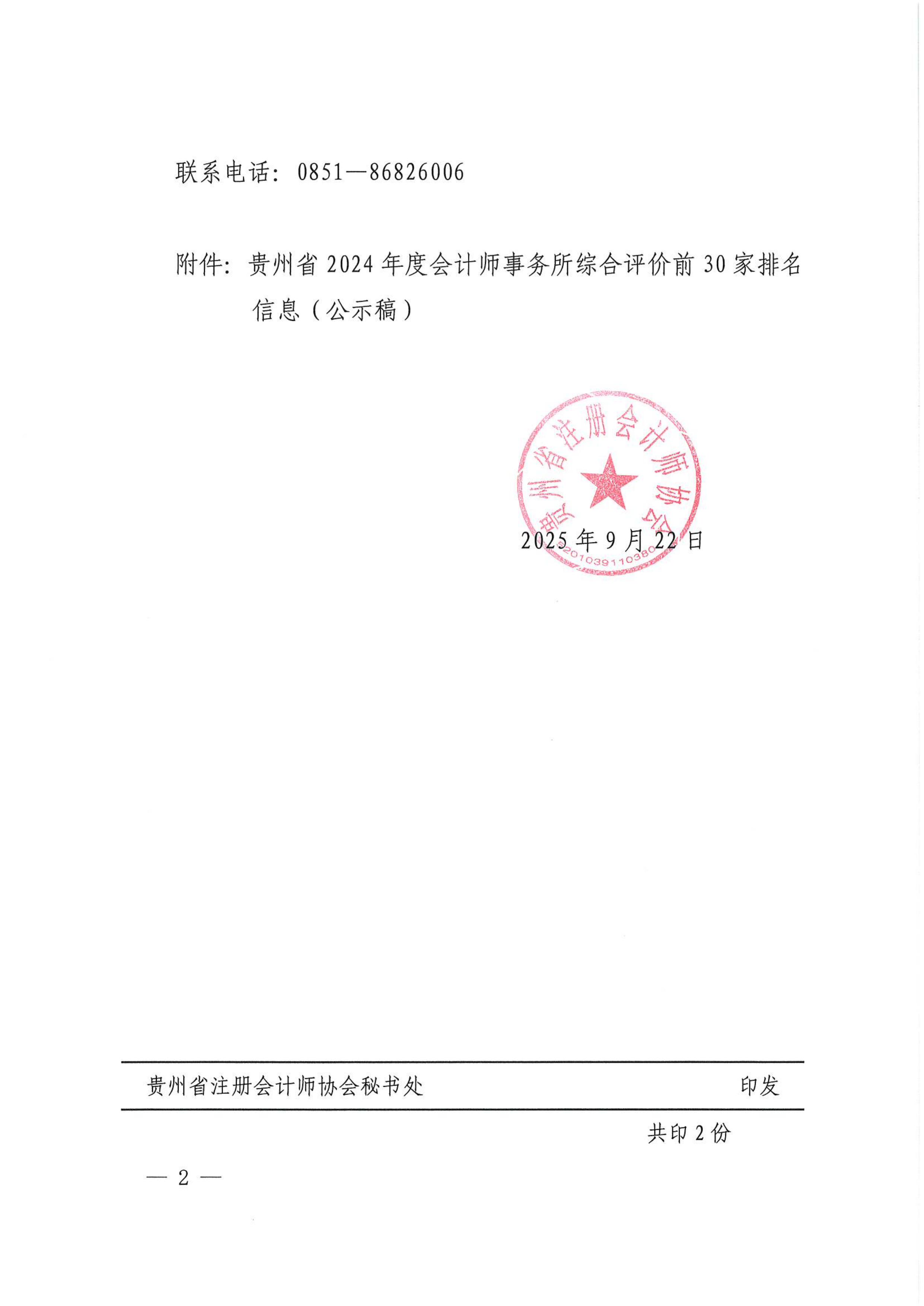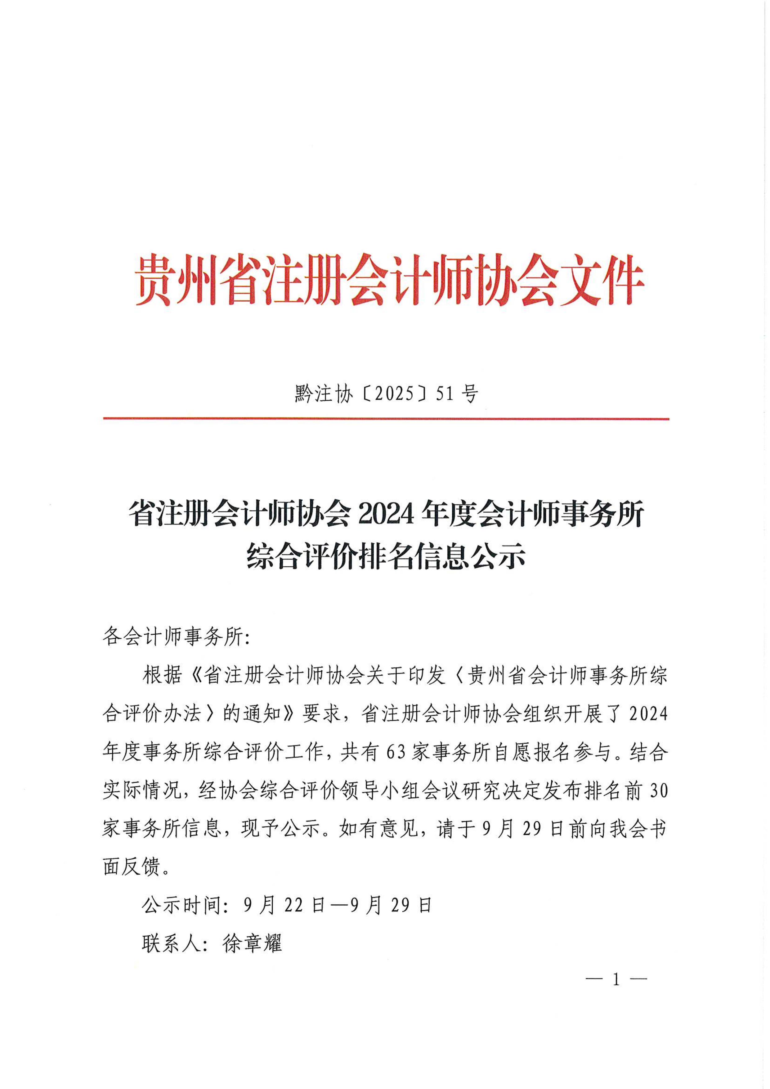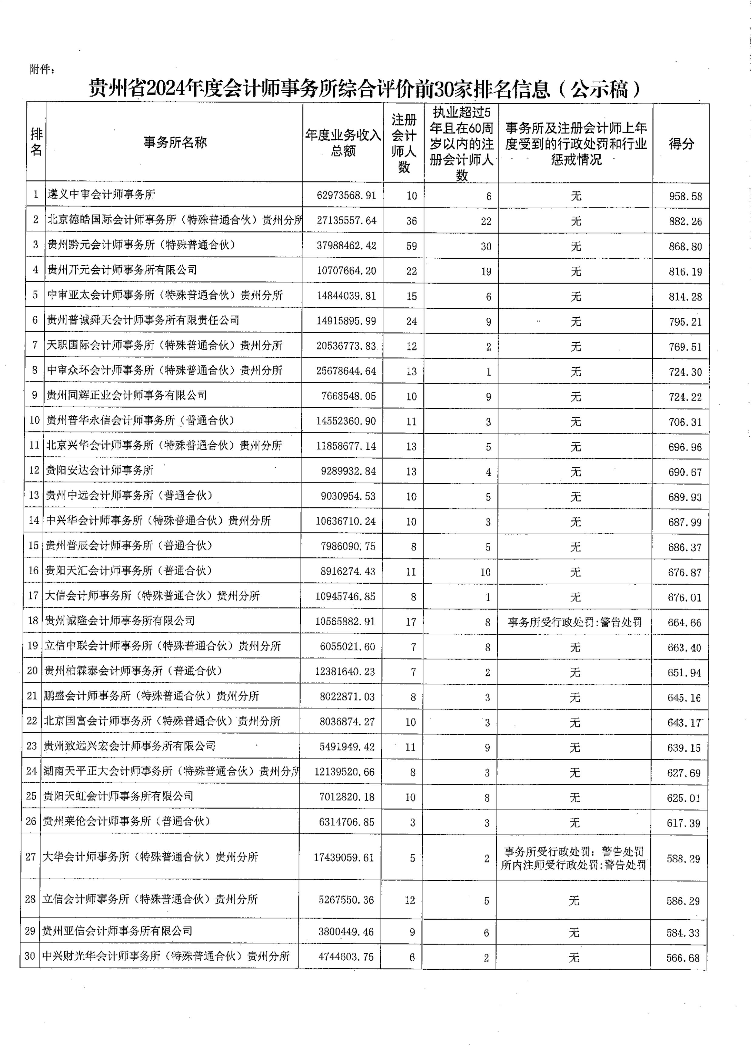 省注册会计师协会2024年度会计师事务所综合评价排名信息公示