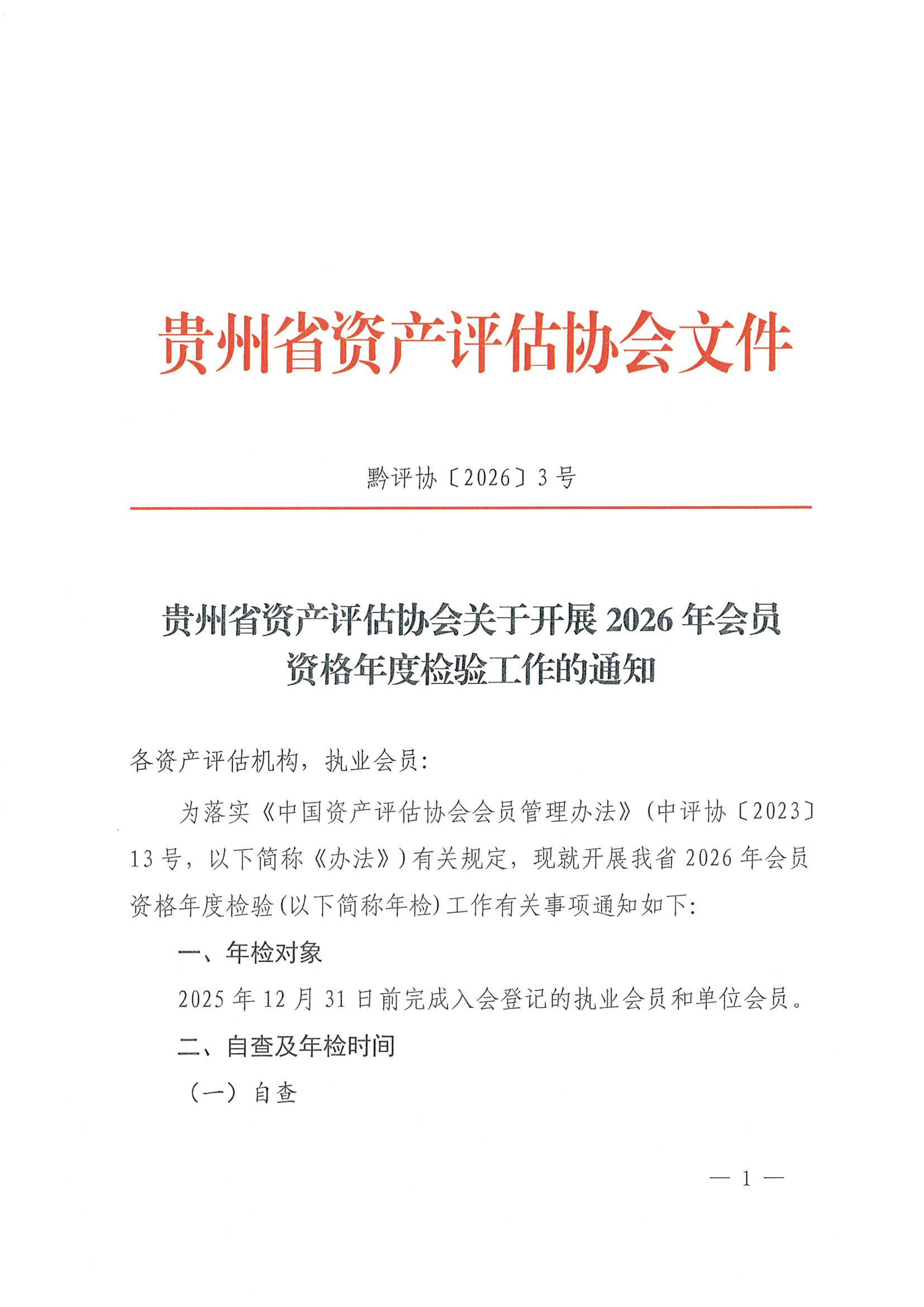 贵州省资产评估协会关于开展2026年会员资格年度检验工作的通知