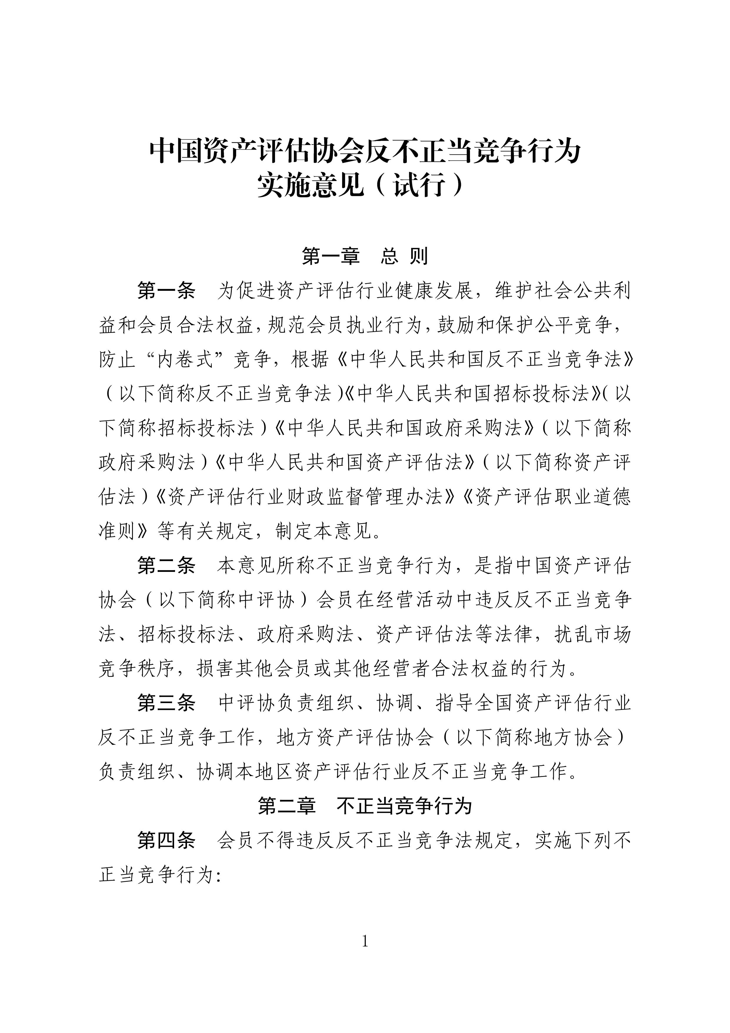 《中国资产评估协会反不正当竞争行为实施意见(试行)》