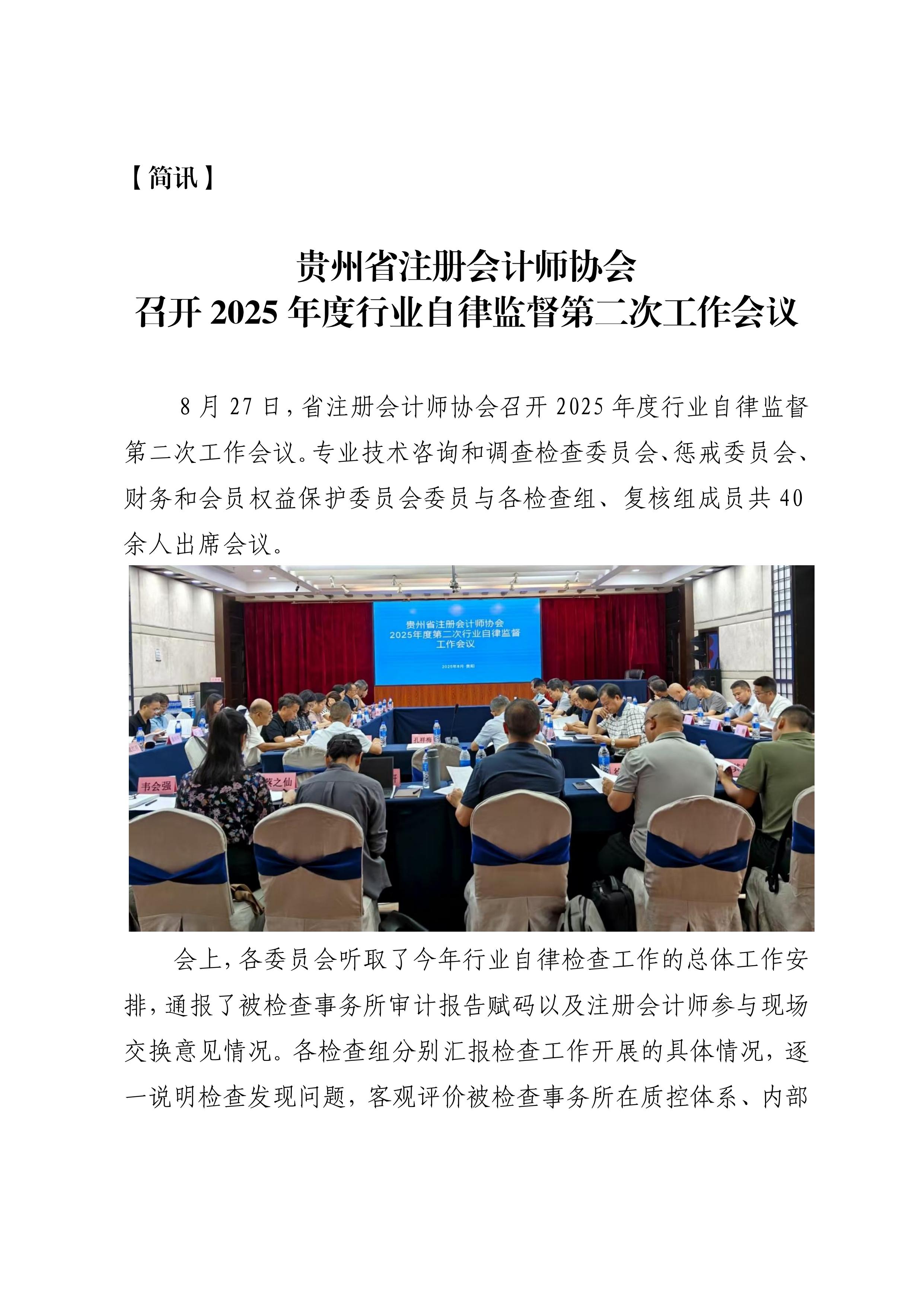 贵州省注册会计师协会召开2025年度行业自律监督第二次工作会议